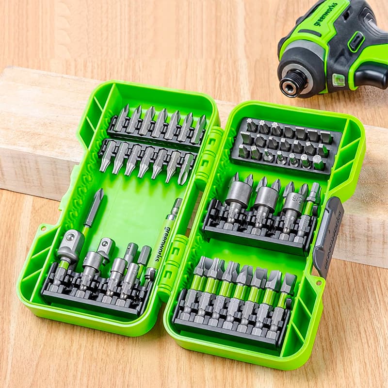 Набор бит, торцевых головок и адаптеров в кейсе Greenworks Арт. 2944407, 70 шт.