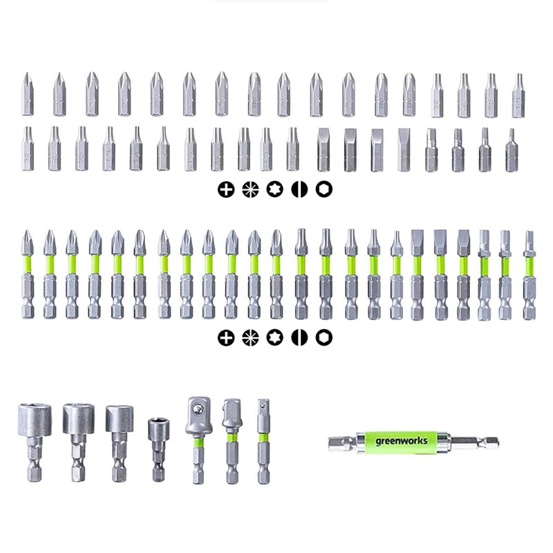 GREENWORKS Набор бит, торцевых головок и адаптеров в кейсе 70 шт. (2944407)