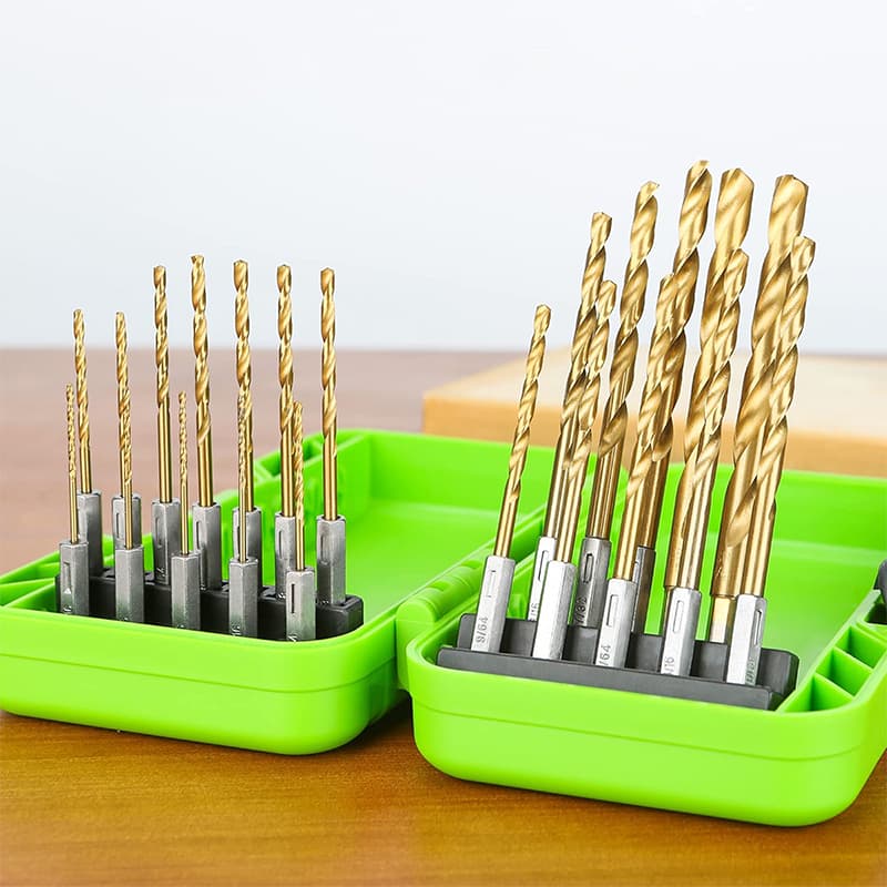 - сверло HSS-TiN с шестигранным хвостовиком 1/4 (HEX), 22 шт: 1,5х3/2х3/2,5х3/3х2/3,2/3,5х2/4,0/4,5/4,8/5,0/5,5/6х2/8 мм