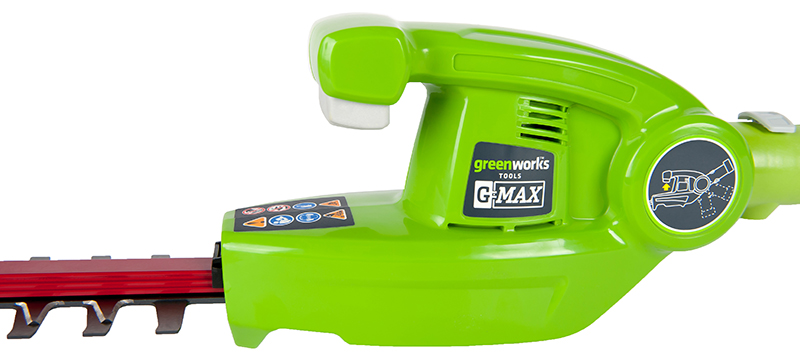 Главная особенность данной модели это раздвижная телескопическая штанга. С её помощью можно легко придать форму высокой живой изгороди или средним садовым деревьям до 4-х метров. Благодаря питанию от 40V аккумулятора кусторез-сучкорез обеспечивает долгую автономную работу. Данный аккумулятор совместим с другими устройствами из линейки G-MAX 40V. Для безопасной работы устройство оснащено системой защиты от случайного включения.