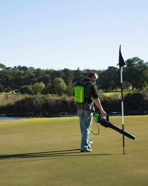 Аккумуляторный воздуходув GreenWorks GB-500R в комплекте с ранцем-аккумулятором (приобретается отдельно). Это профессиональная коммерческая модель для уборки от мусора газонов, садовых зон, придомовых зон, двориков и т.д. Данная модель оснащена бесщёточным электродвигателем мощностью 82V. Двигатель сопоставим по мощности с двигателем внутреннего сгорания, самый мощный в линейке GreenWorks. В отличие от бензиновых моделей, электрический воздуходув может применяться в помещениях, поскольку не производит вредных выхлопов. Расширенная труба подачи воздуха обеспечивает производительность 15 куб. м /мин при максимальной скорости воздушного потока 210 км/ч. Эта модель моментально готова к работе нажатием одной кнопки.