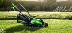 Газонокосилки компании Greenworks созданы в двух вариантах: работающие от сети и от аккумуляторной батареи. Если не хотите зависеть от длины шнура, купите аккумуляторный вариант.
